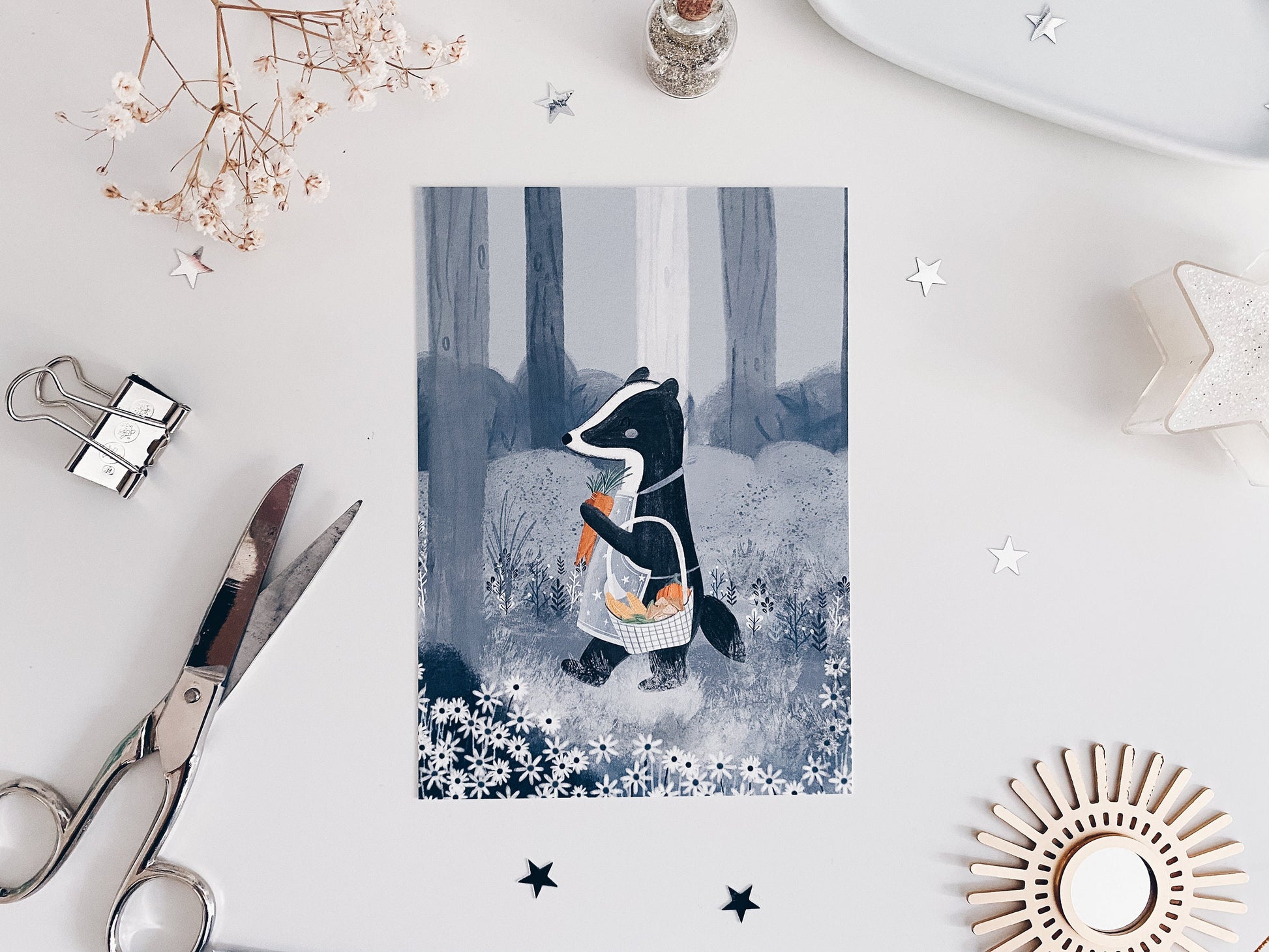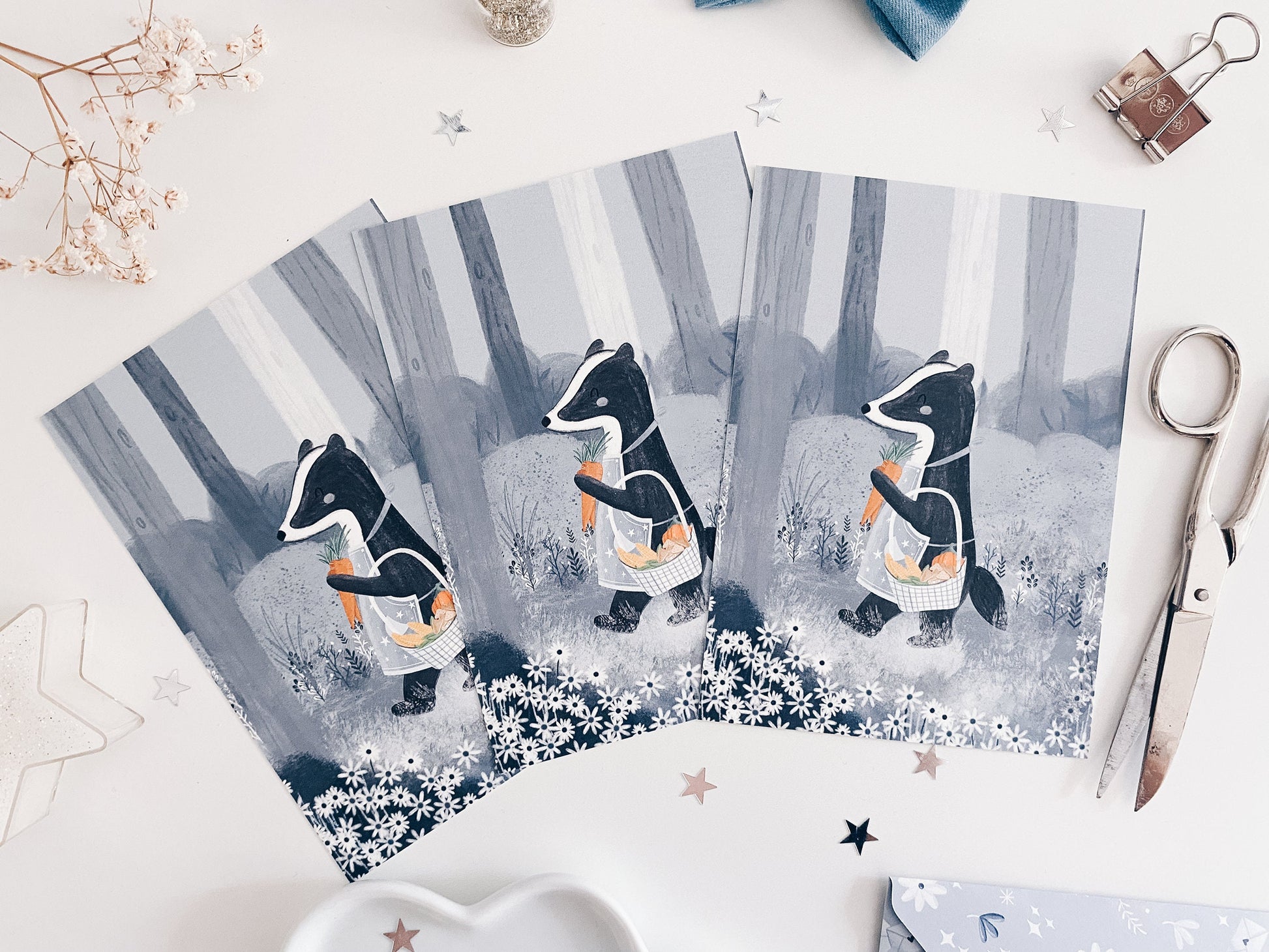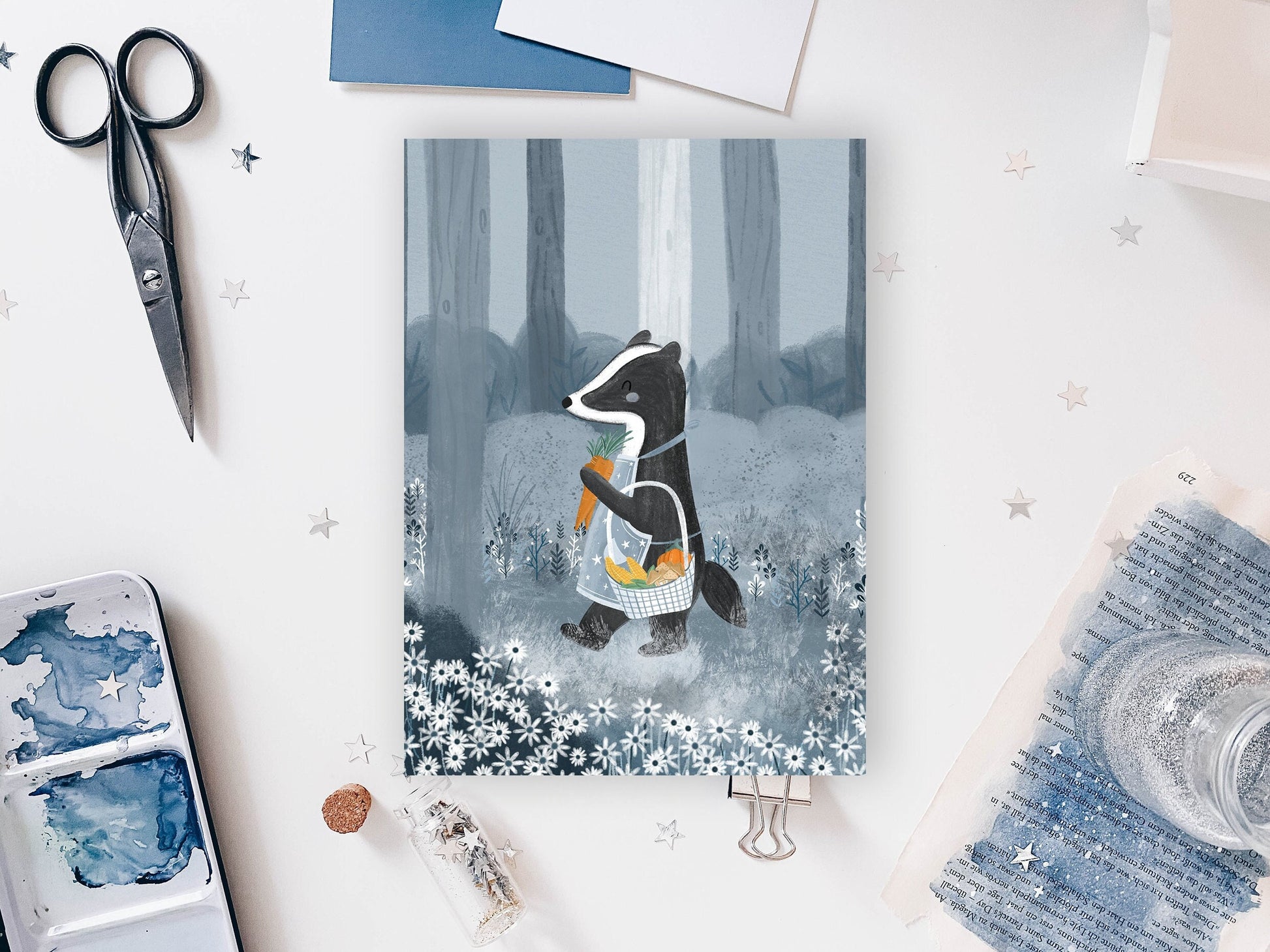 Postcard - Badger in the woods