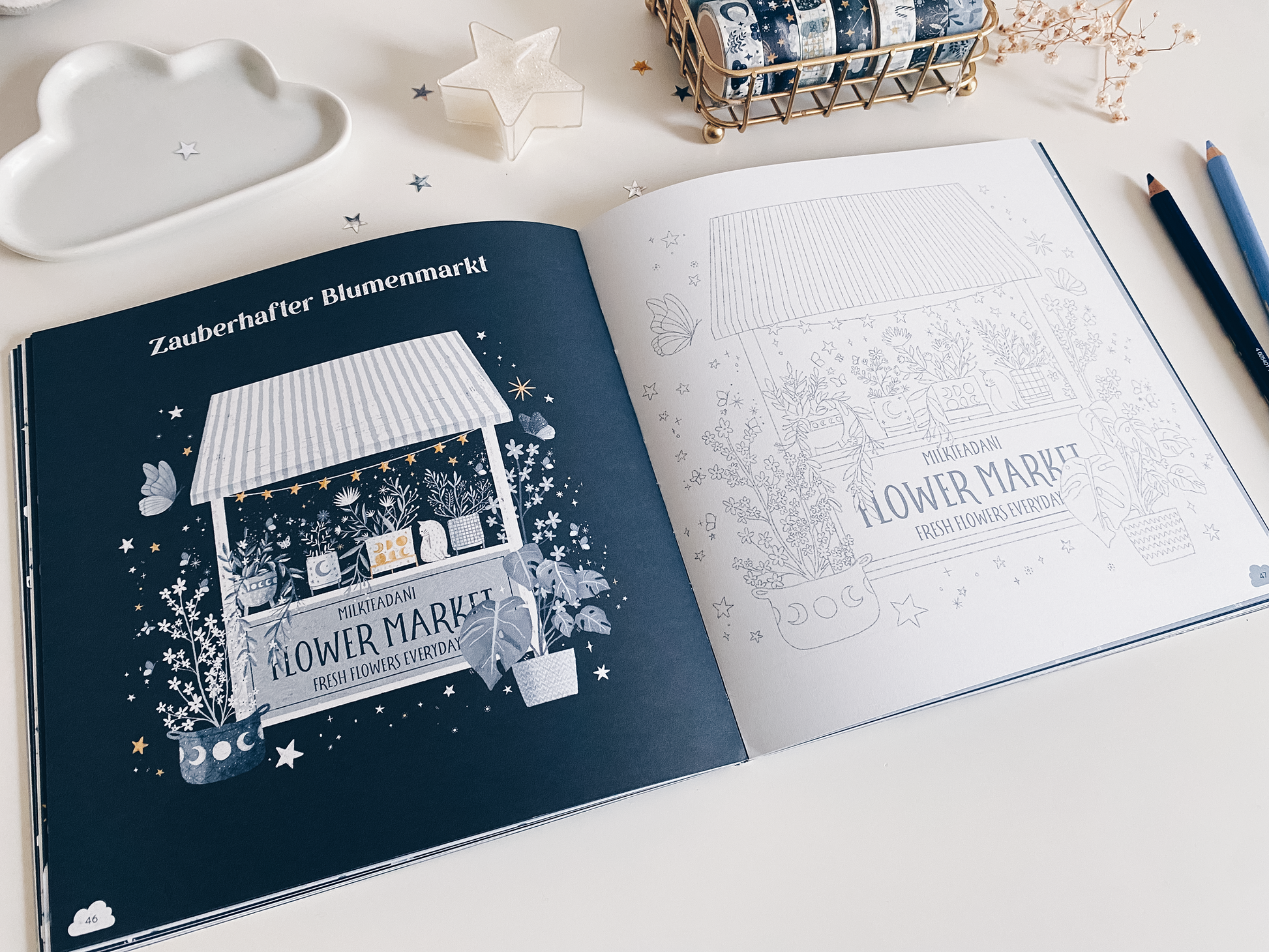 Entdecke auf 96 liebevoll gestalteten Seiten zauberhafte Bilder zum Ausmalen, Papier-DIYs wie Lesezeichen und eine Girlande, sowie leichte Tutorials zum Zeichnen niedlicher Motive. Diese magischen Illustrationen finden sicherlich auch in deinem Journal oder Kalender einen Platz. Das hochwertige und liebevoll gestaltete Kreativbuch wird so zur Quelle kleiner entspannender Auszeiten, die sich auch sehr gut als Geschenk eignen.