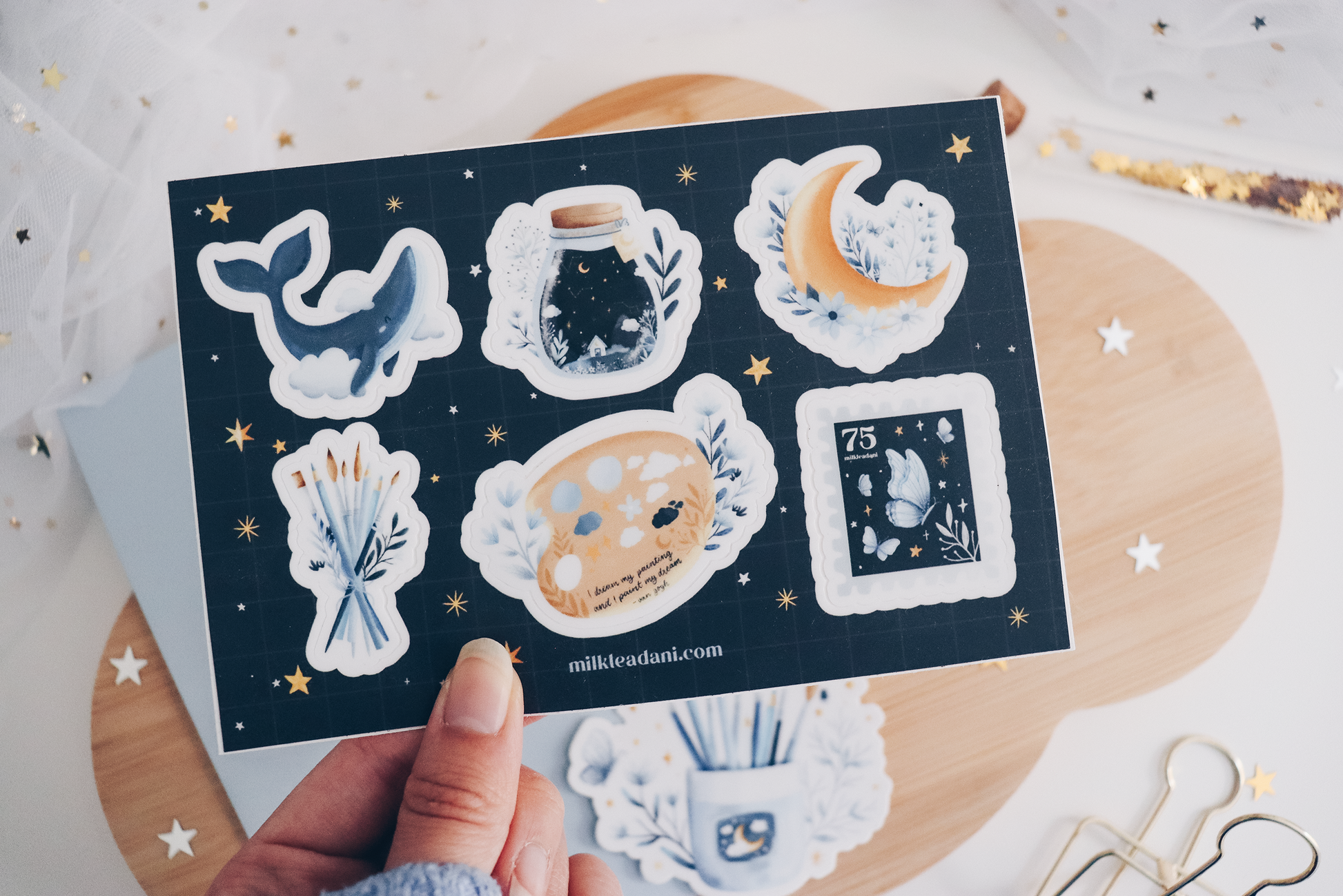 - Vinyl Sticker Sheet with gold foil effect (9 x 17cm)