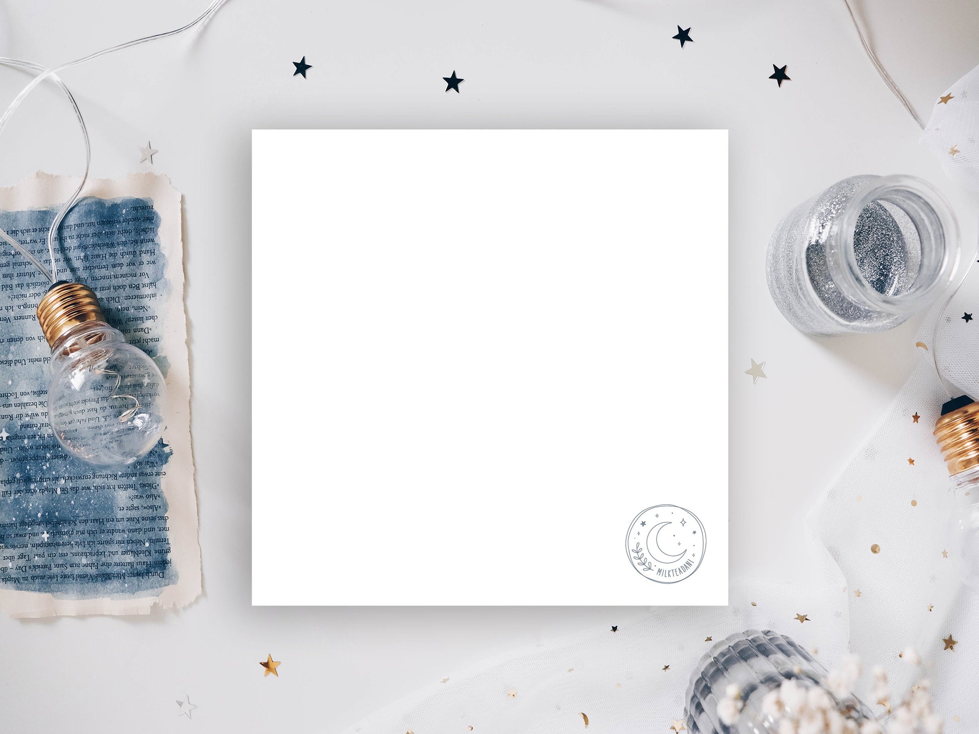 Printed on 300g/sqm natural cardstock with a blank backside.