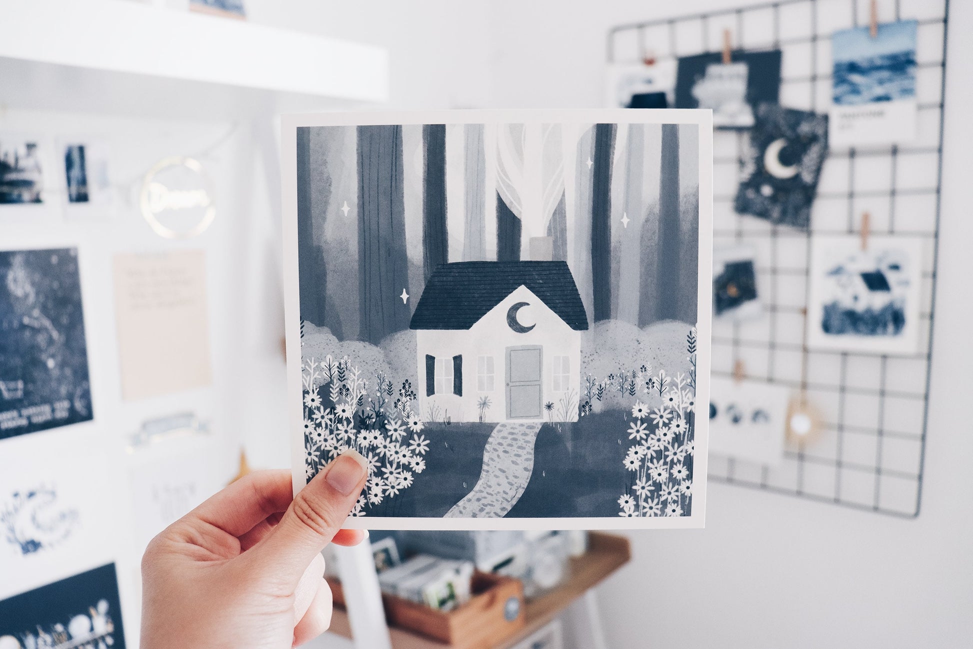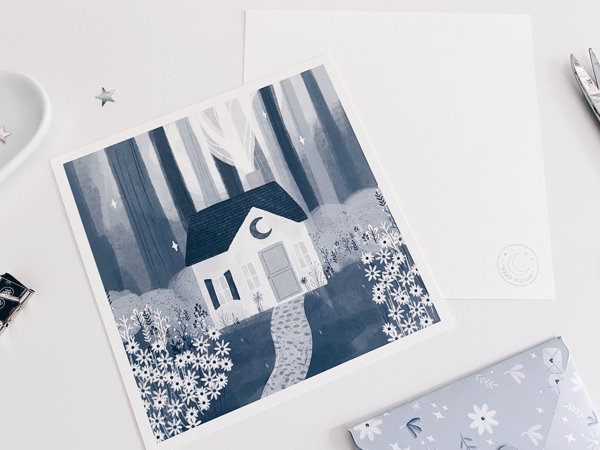 Forest House print in 148x148MM for cozy vibes.