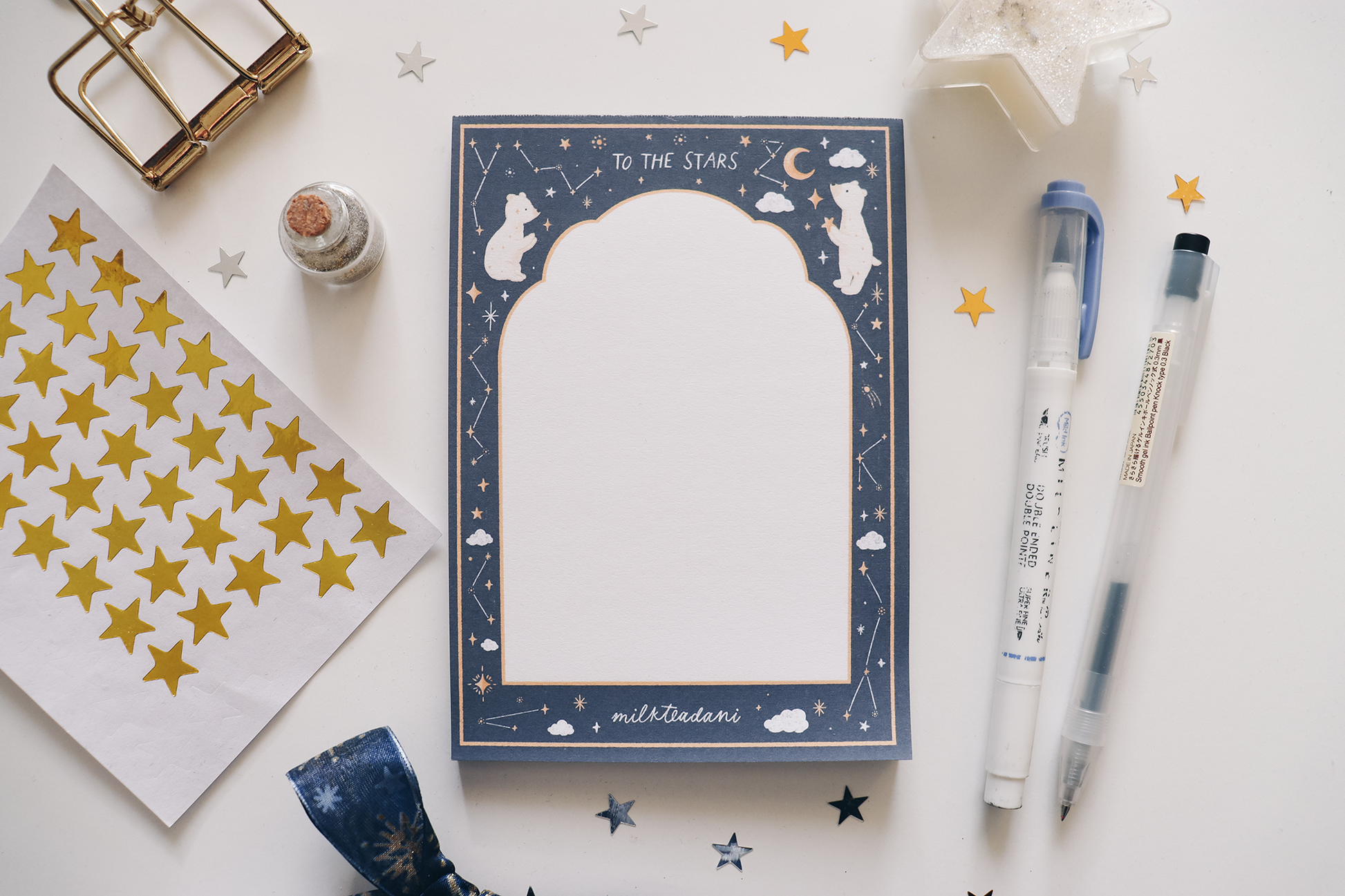 Starry Bear Illustration Notepad in 105x48MM with 50 sheets